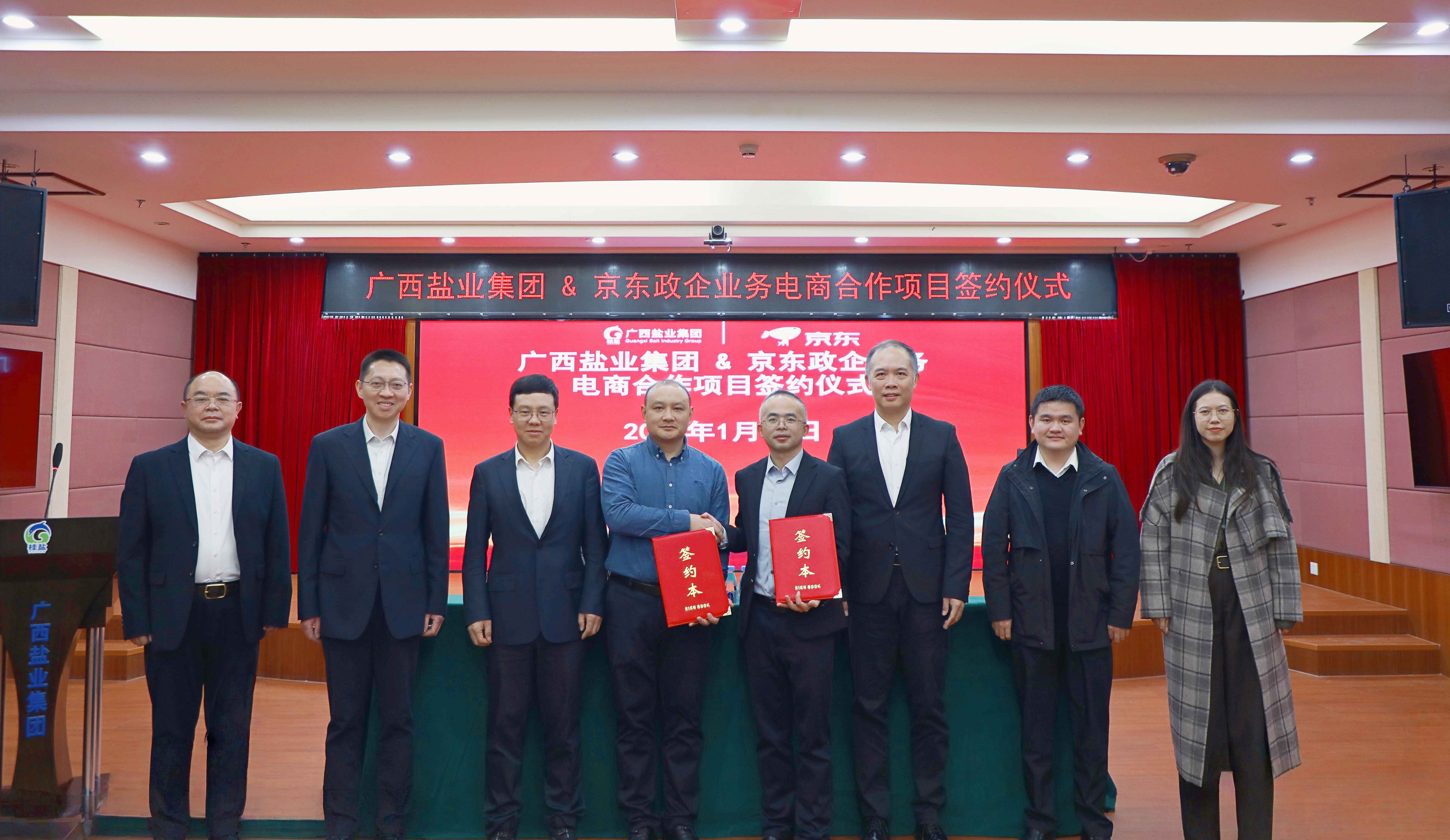 2026年1月12日,廣西鹽業(yè)集團(tuán)與京東集團(tuán)在南寧成功舉行戰(zhàn)略合作簽約儀式,圍繞集采多元化模式與數(shù)智化購銷平臺建設(shè)展開深度合作。廣投集團(tuán)副總經(jīng)理張樹新,廣西鹽業(yè)集團(tuán)黨委書記、董事長邱潮涌,京東集團(tuán)政企業(yè)務(wù)副總裁、華南區(qū)總經(jīng)理譚聰出席并見證簽約儀式。廣西鹽業(yè)集團(tuán)黨委副書記、副董事長、總經(jīng)理韋平,京東集團(tuán)政企業(yè)務(wù)廣西總經(jīng)理張洪劍代表雙方簽署協(xié)議。